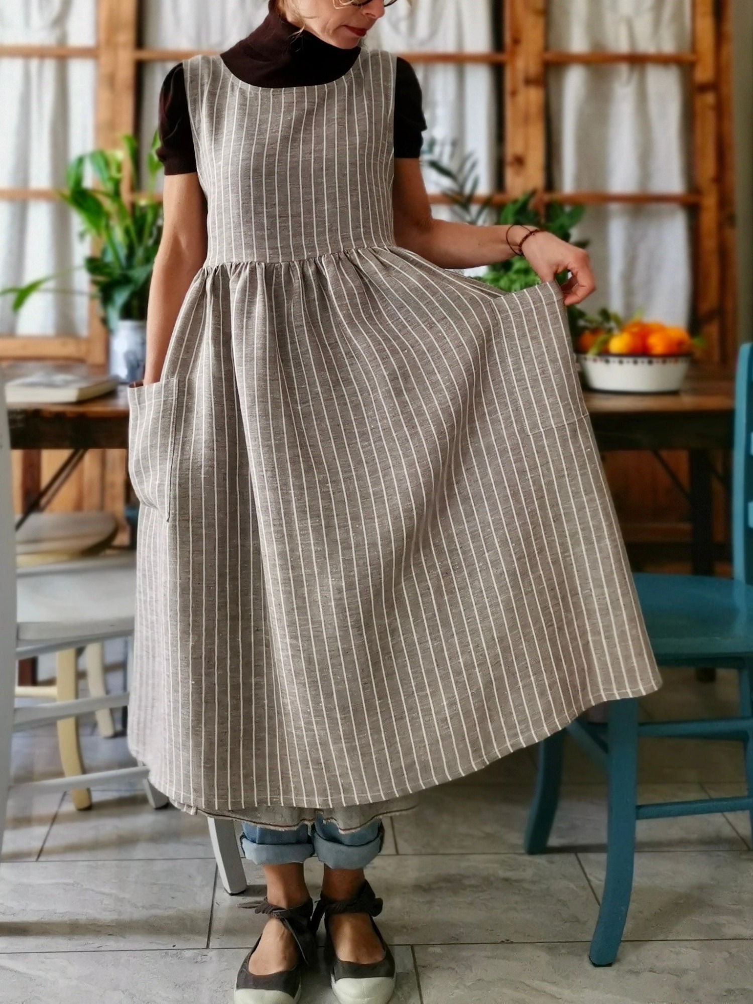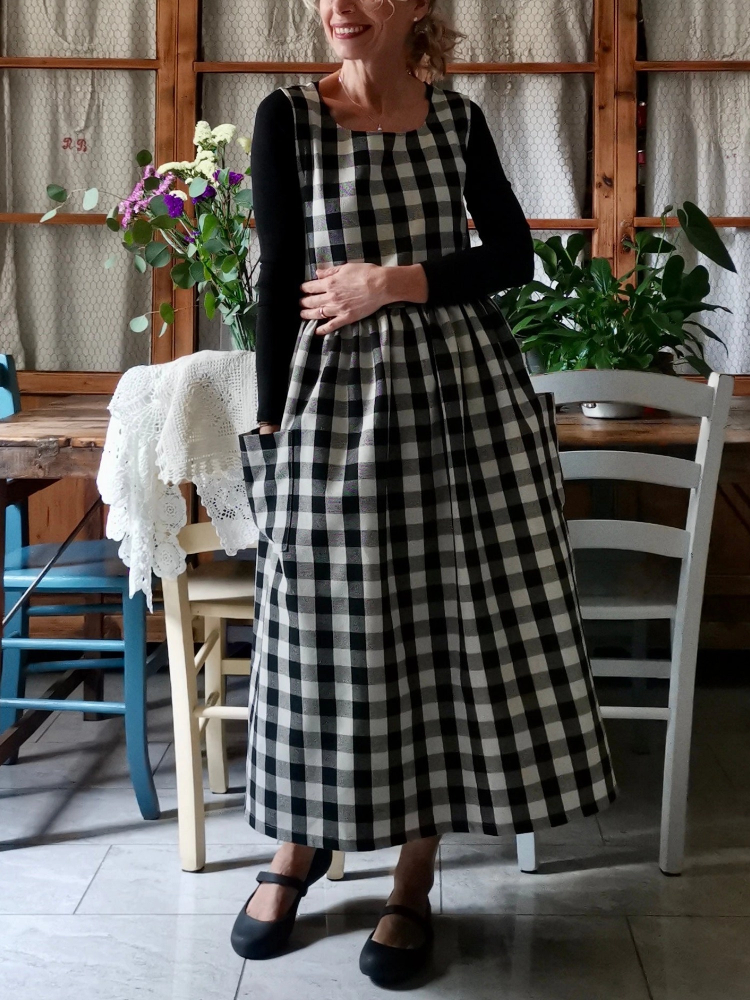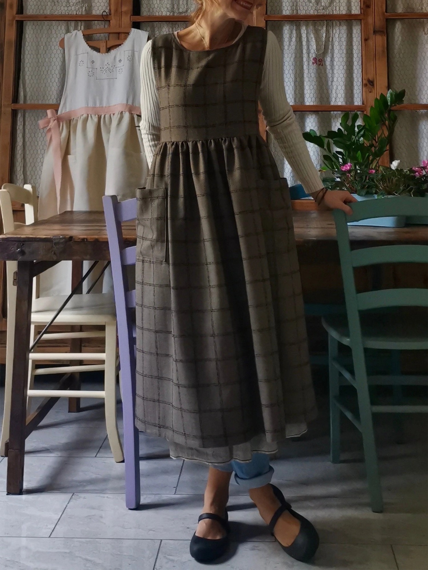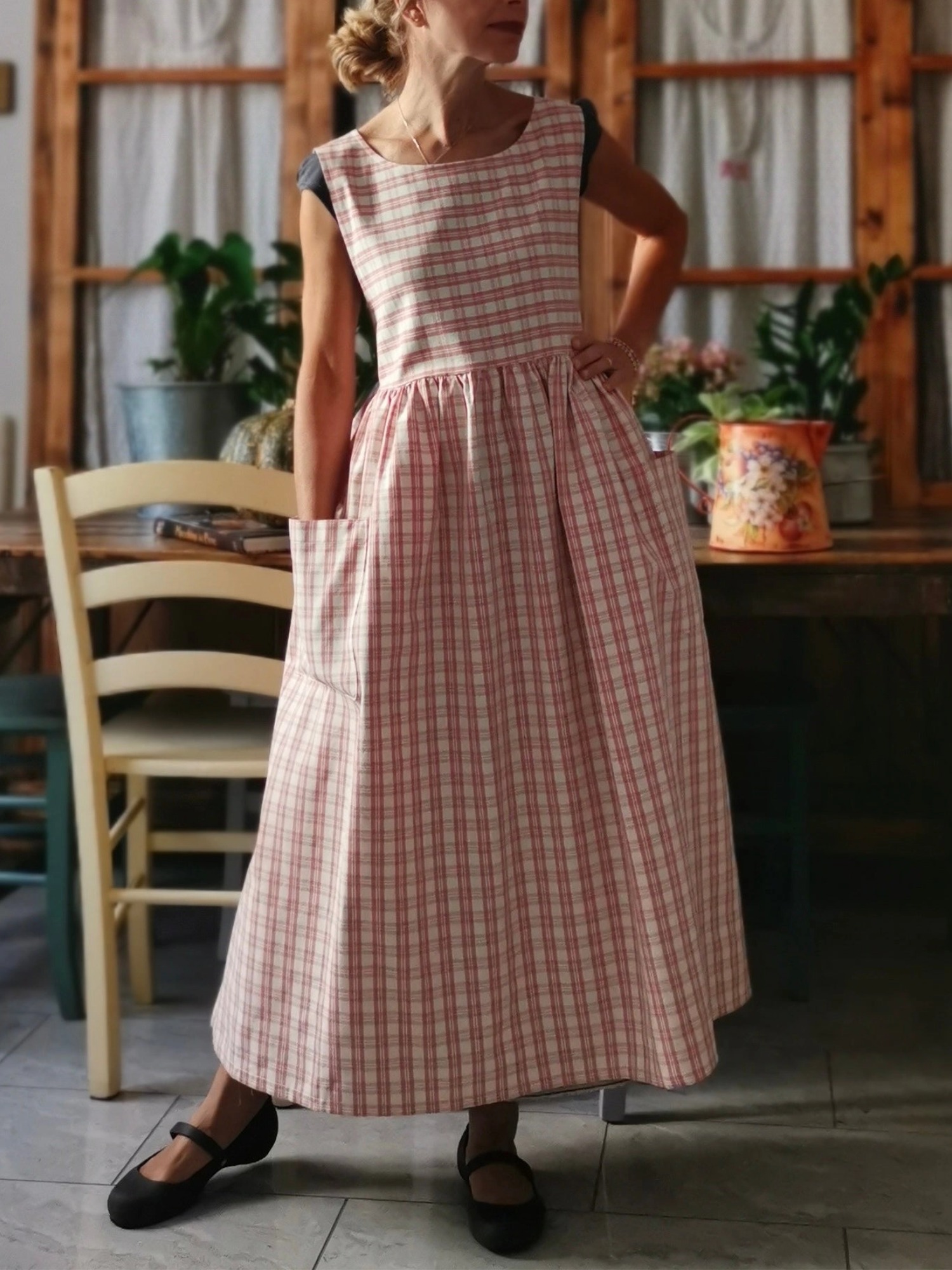 Pink and Cream Tartan Check Cotton Apron