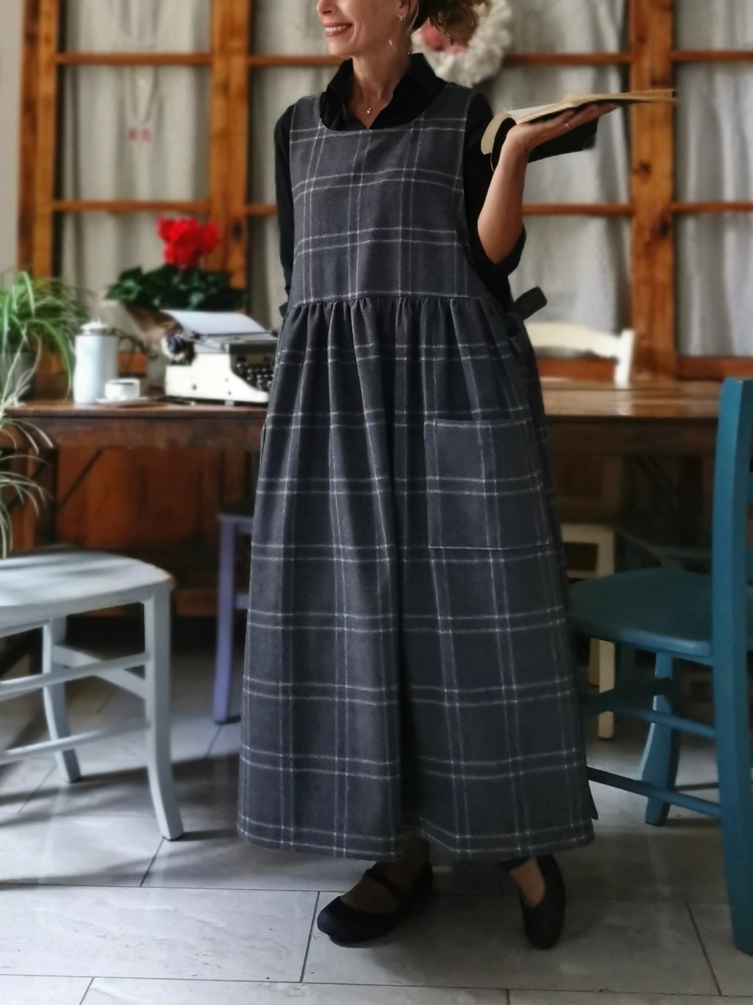 Sky Blue and Grey Tartan Cotton Kitchen Apron